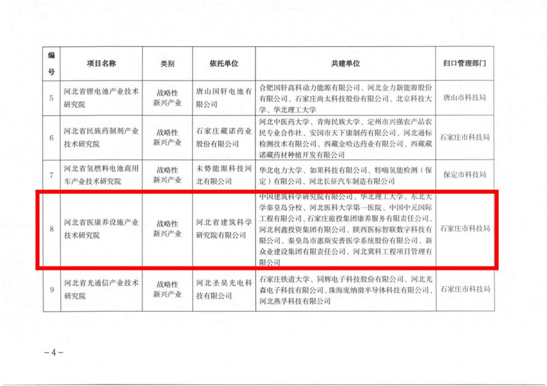為深入貫徹落實(shí)黨的二十大精神,深入踐行“健康中國”戰(zhàn)略,立足醫(yī)康養(yǎng)融合高效發(fā)展,探索醫(yī)康養(yǎng)全產(chǎn)業(yè)鏈優(yōu)質(zhì)高效發(fā)展的路徑和舉措,河北省建筑科學(xué)研究院有限公司牽頭發(fā)起成立的河北省醫(yī)康養(yǎng)設(shè)施產(chǎn)業(yè)技術(shù)研究院近日通過河北省科學(xué)技術(shù)廳審批。