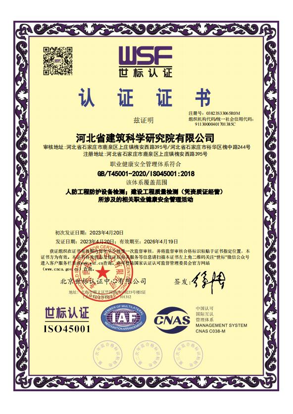 河北省建筑科學研究院有限公司認證證書2